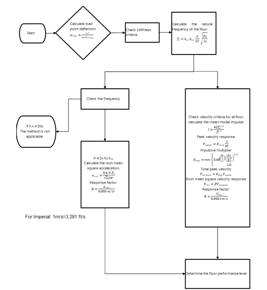This calculator goes beyond simple static deflection. The tool analyzes the Fundamental Frequency (f1) and Impulsive Velocity Response, allowing you to tune the floor mass and stiffness to meet strict vibration criteria (e.g., 8Hz for offices), ensuring the “feel” of the floor matches the quality of the building.