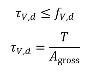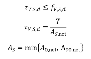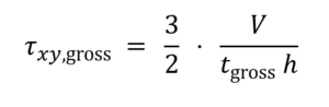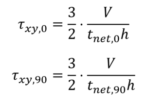 The shear stresses calculated for the three failure mechanisms in any of the two methods used on the app are checked against the gross in-plane shear strength, the net in-plane shear strength and the in-plane torsional shear strength. The characteristic values of the net and gross shear strength are usually given by in the ETA documents of CLT manufacturers, while for the in-plane torsional strength a characteristic value of 2.5 MPa is recommended.