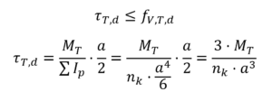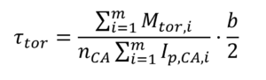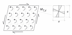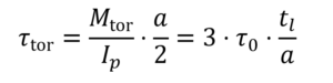 -Mechanism II (torsion): Shear strain in the RVSE, in case of insufficient or missing connection between the board edges, causes also torsional strain in the surface bond layer. This may cause failure in the gluing interface, which is dedicated to mechanism II “torsion”. Assuming polar torsion, the torsional shear stresses τtor are given as: