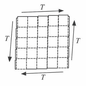 -Mechanism I (net shear) consider the transfer of shear forces via the cross sections of boards within a RVSE. Consequently, the shear stress is given as: