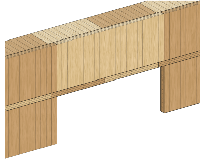 CLT beams can be used to support floors or roofs of CLT. The beams require bracing, which can be achieved by screwing the floor or roof panel firmly into the beam. Beams can also be used to stiffen the floor, roof, or wall panels.