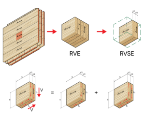The third method is the RVSE method presented by Bogensperger et al. (2010). This model is developed by referring to an ideal CLT panel with an infinite number of layers and considering a crossing interface with width equal to the width of the laminations. This element is then simplified to obtain a Representative Volume Sub Element (RVSE) of CLT, which is thickness equal to a CLT element and in width and depth equal to the width of one board plus the half of the width of gaps between adjacent boards.