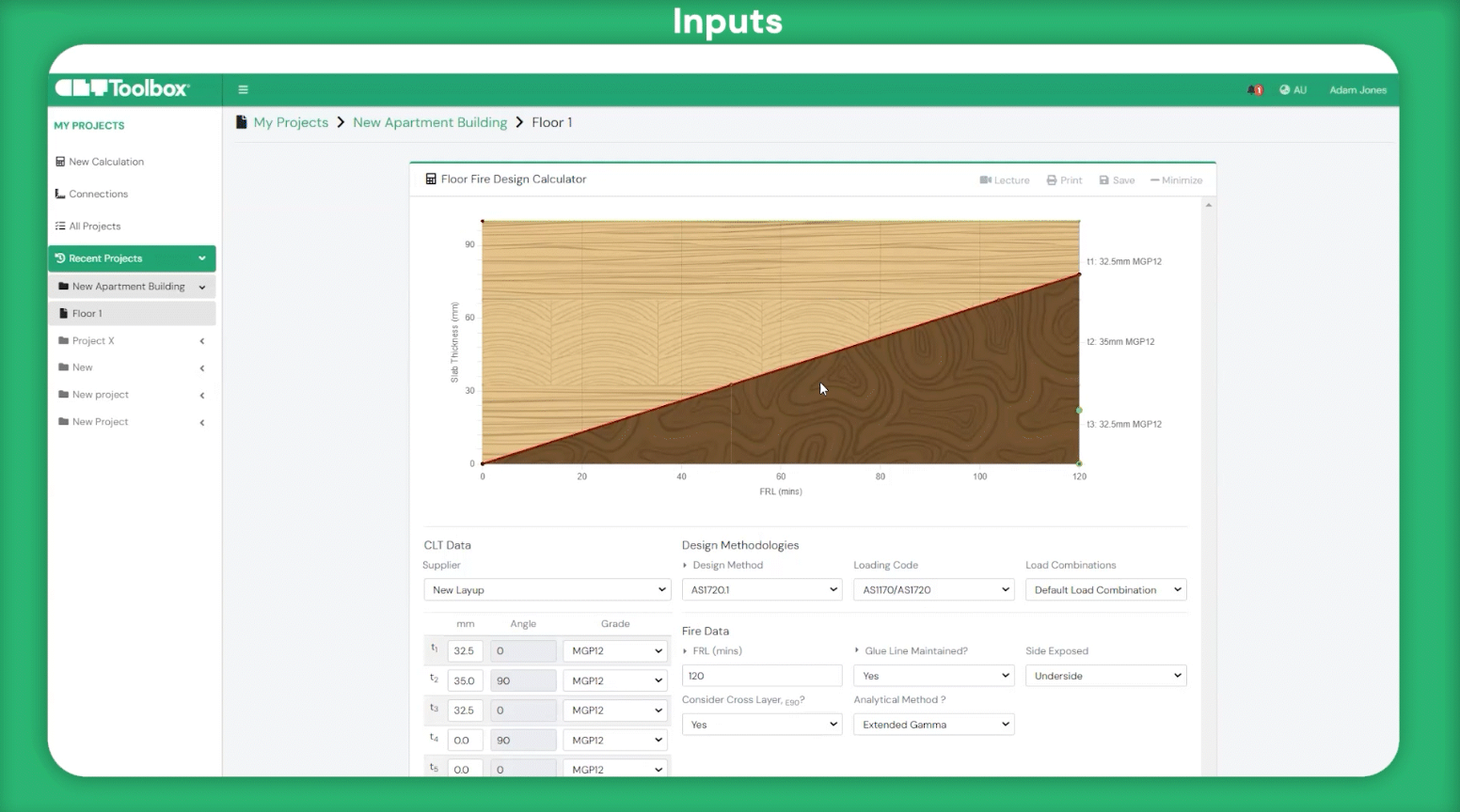 Input the variables for the calculations and design.