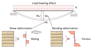 The Gamma method offers a unique perspective by treating the longitudinal layers of a CLT panel as beams and the cross layers as continuously distributed connections. It assumes that the load on the panel is carried only by the longitudinal layers, while the cross layers, with their shear stiffness equivalent to the modulus of rolling shear, handle the shear deformation.