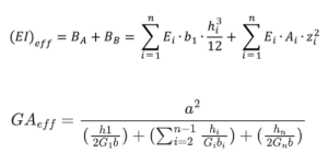 One significant advantage of this method is its ability to consider shear deformation in both parallel and cross layers without being limited by the number of layers in a panel. It uses the GAeff calculation for shear deformation and separately calculates bending and shear deformations. The effective stiffness is then recalculated into a term called EI apparent (EIapp).