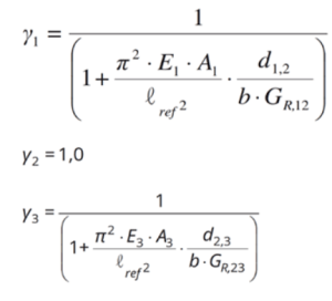 This method is suitable for CLT build-ups with two and three longitudinal layers but is limited in its application. It provides a solution for simply supported beams or panels with sinusoidal load distribution and does not consider shear deformation in longitudinal layers. Moreover, its effectiveness depends on the span length, and it becomes cumbersome for panels with more than five total layers.